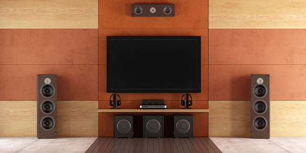 Package 3: 5.1 Home Theater Upgraded includes wire in the living room with one 5.1 Home Theater Connection Kit and five angled in-ceiling speakers and one subwoofer.